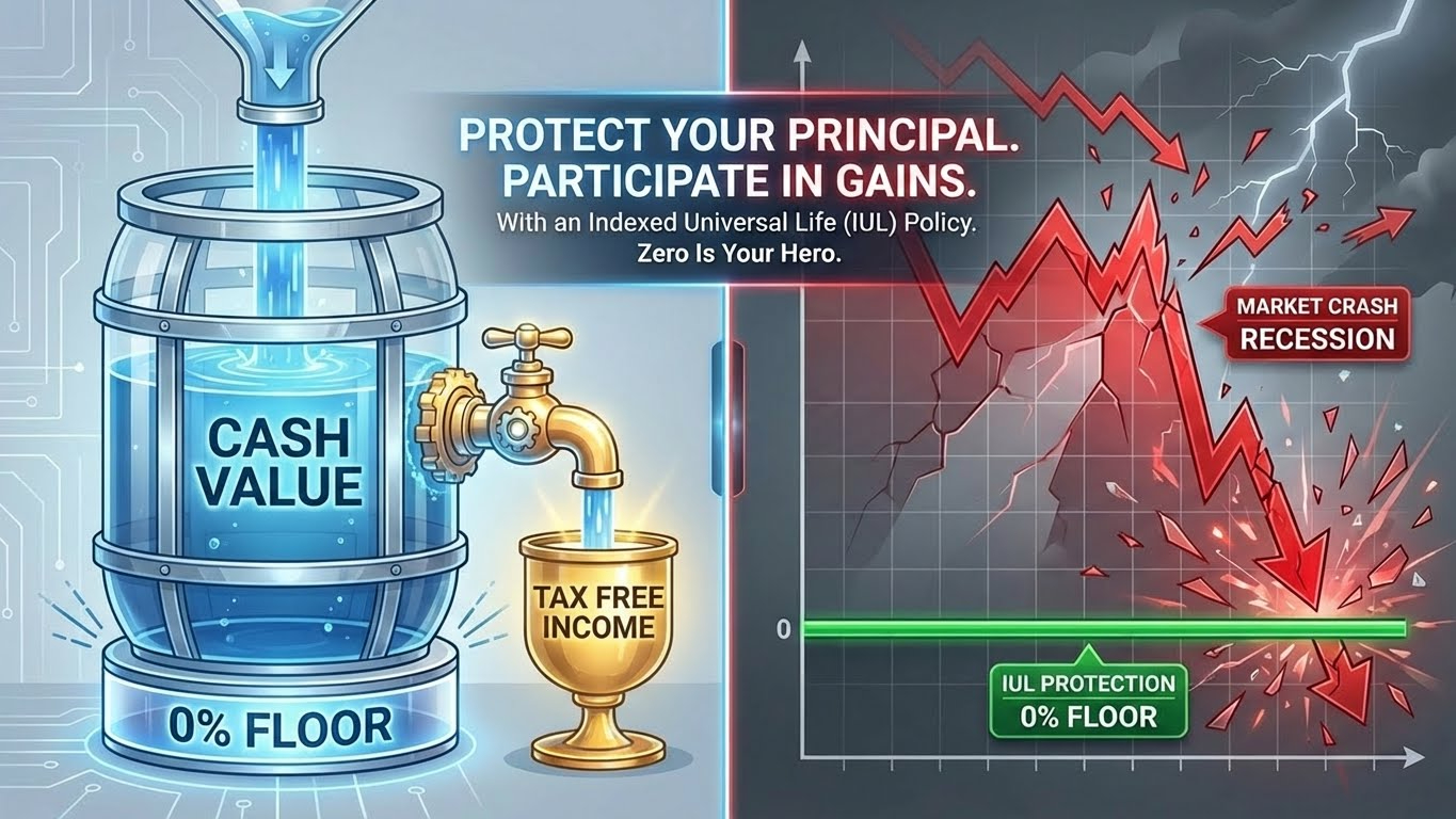 We structured an Indexed Universal Life (IUL) policy. Her cash value participates in market gains (up to a cap) but has a 0% floor. If the market crashes tomorrow, she loses nothing. Zero is her Hero.